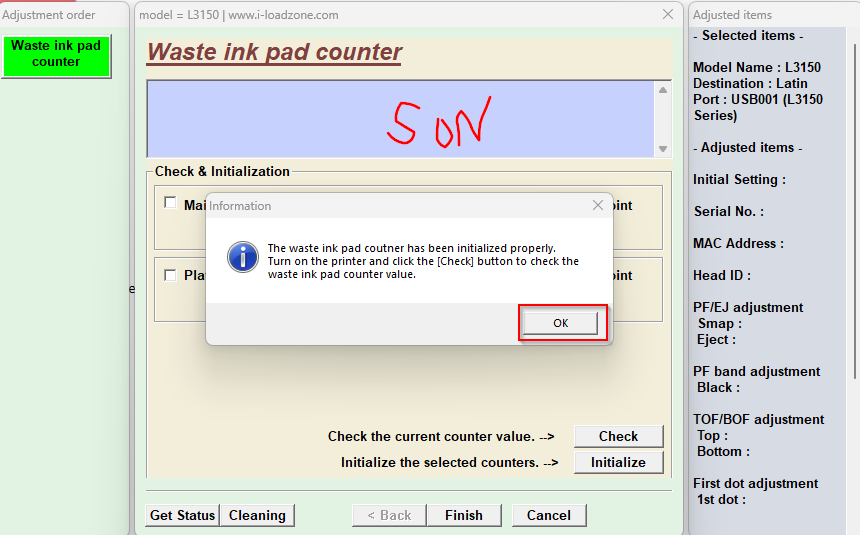 Once you click “Ok,” when you turn your printer back on, the issue should be resolved.
