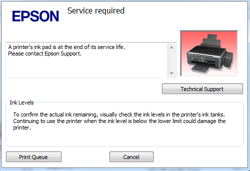 First, your printer’s lights will flash red, and it will display the error message “The ink pad has reached the end of its service life.” It will also indicate that service is required.